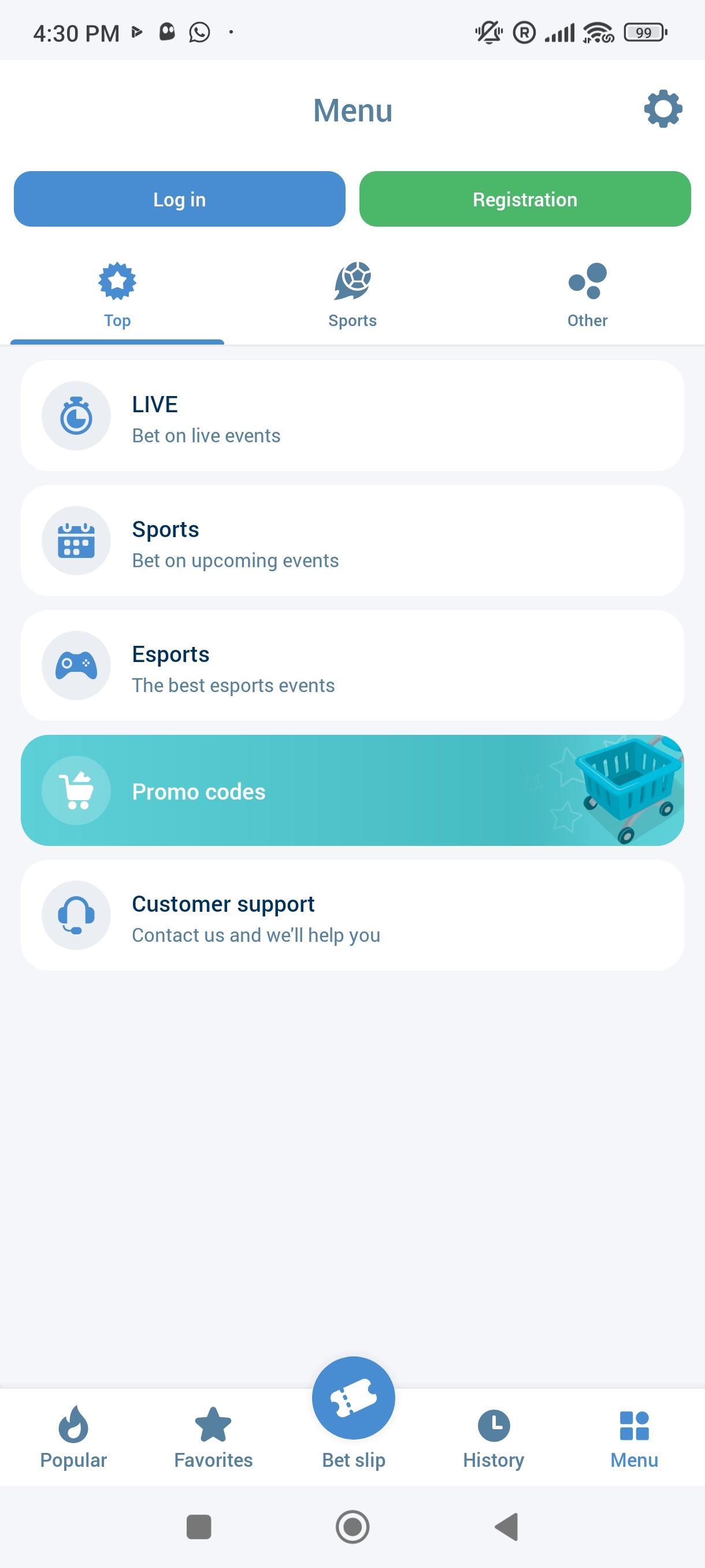- Popular. The main screen of the mobile app which provides information about bets and bonuses.