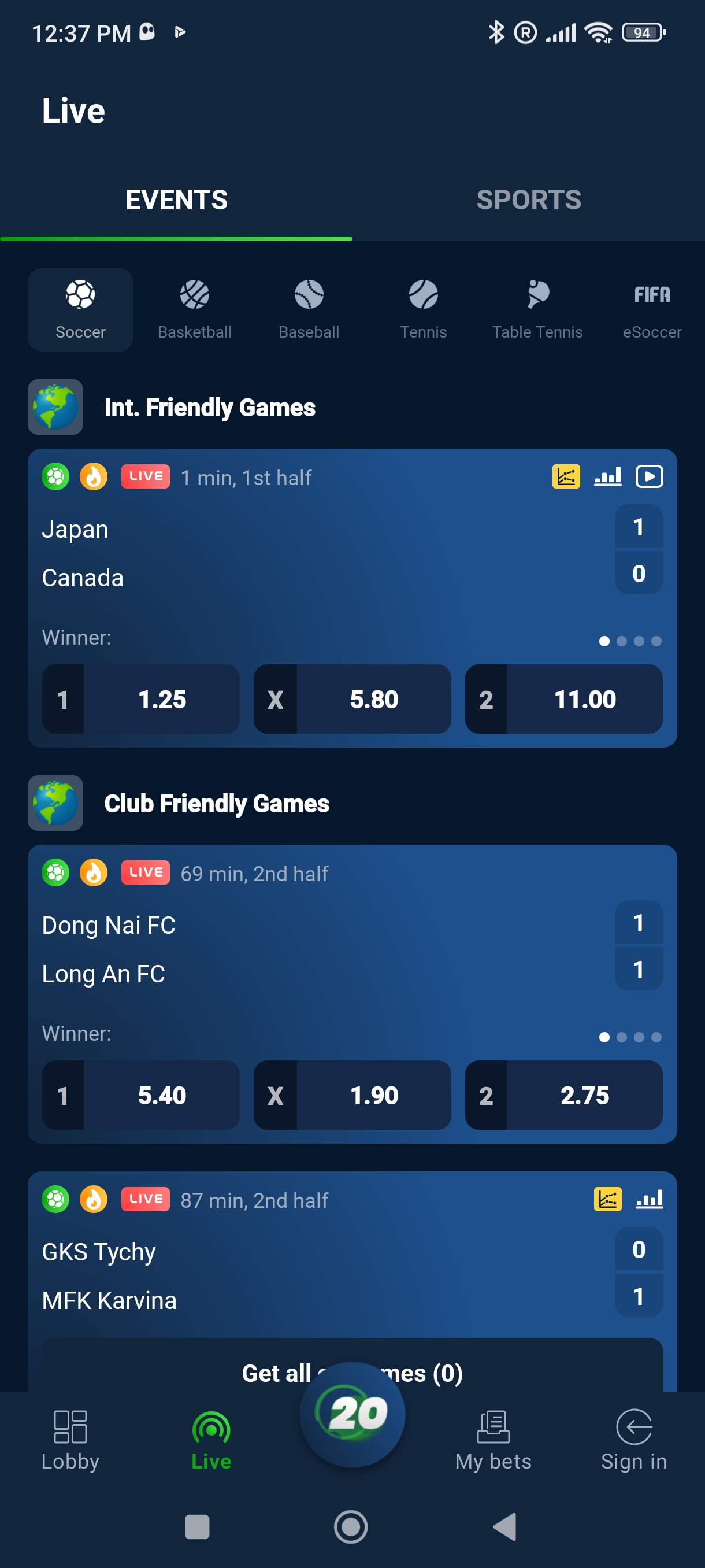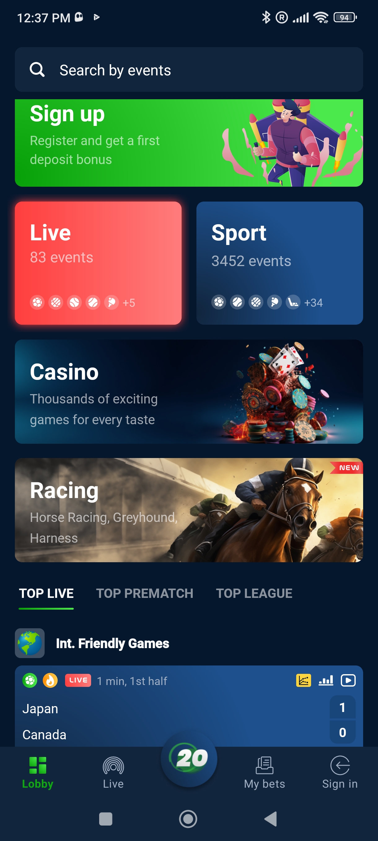 The betting company 20Bet is popular among bettors around the world thanks to its convenient functionality, a wide range of betting options, and a optimized mobile application for gadgets running on the Android operating system. You can download the installation file from the TrueBuki.com website, it is completely checked for malware, and the installation takes a few minutes. The user needs to go to the device settings and allow the installation of the application from an unknown source. Then you need to run the apk-file and the application logo will appear on the smartphone screen.