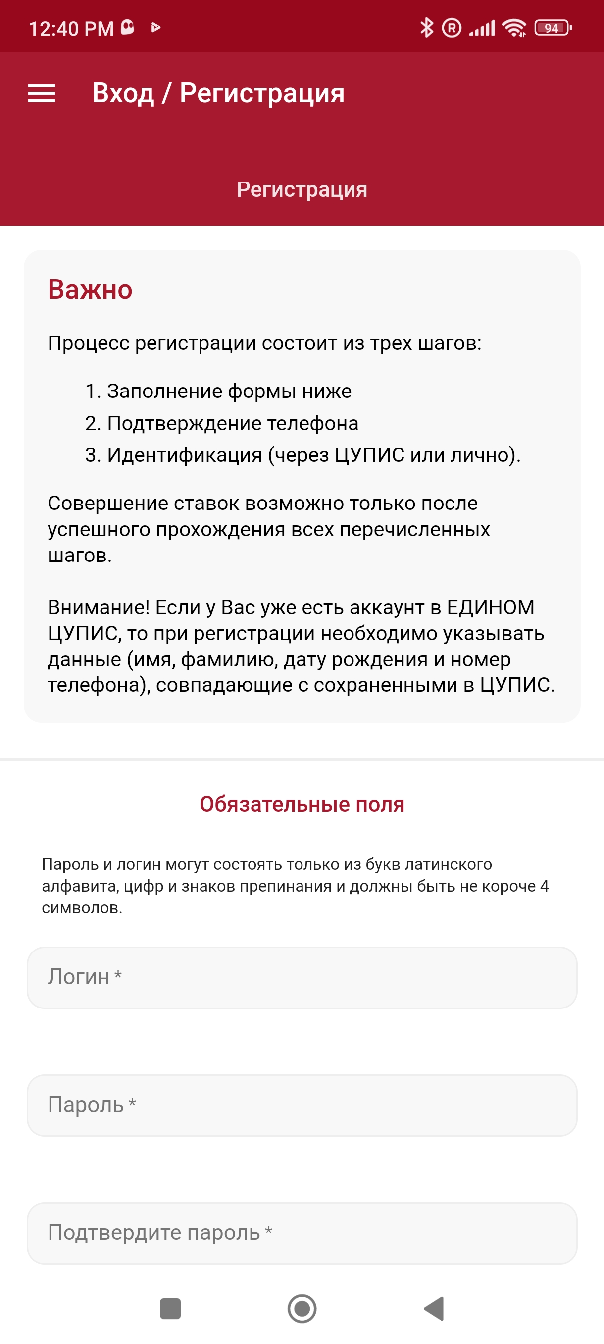 The Tennisi Bet app is ready to use immediately after installation. To explore the betting line and place real-money bets, users need to log in. If you don’t have an account, you’ll need to create one. The registration process in the app includes the following steps:
