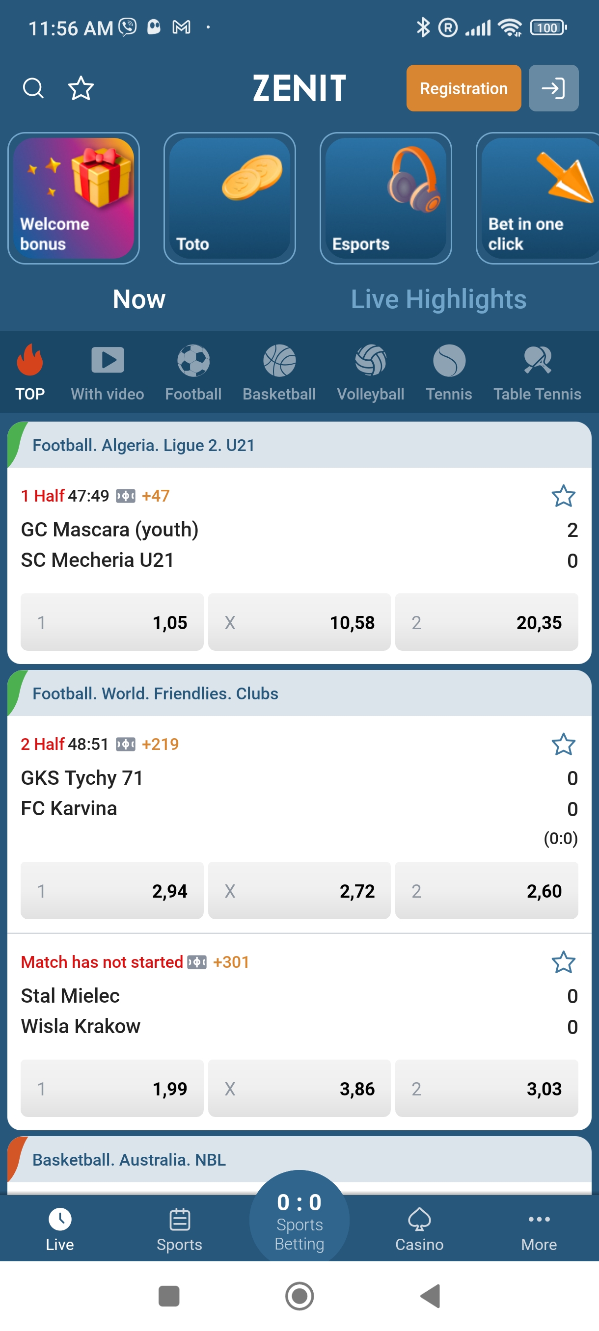 Placing a bet is intuitive and should be easy even for beginners, let alone experienced players. Simply select an event from the pre-match or live section, and it will automatically be added to your bet slip—referred to as the "Basket" in the Zenit mobile app.