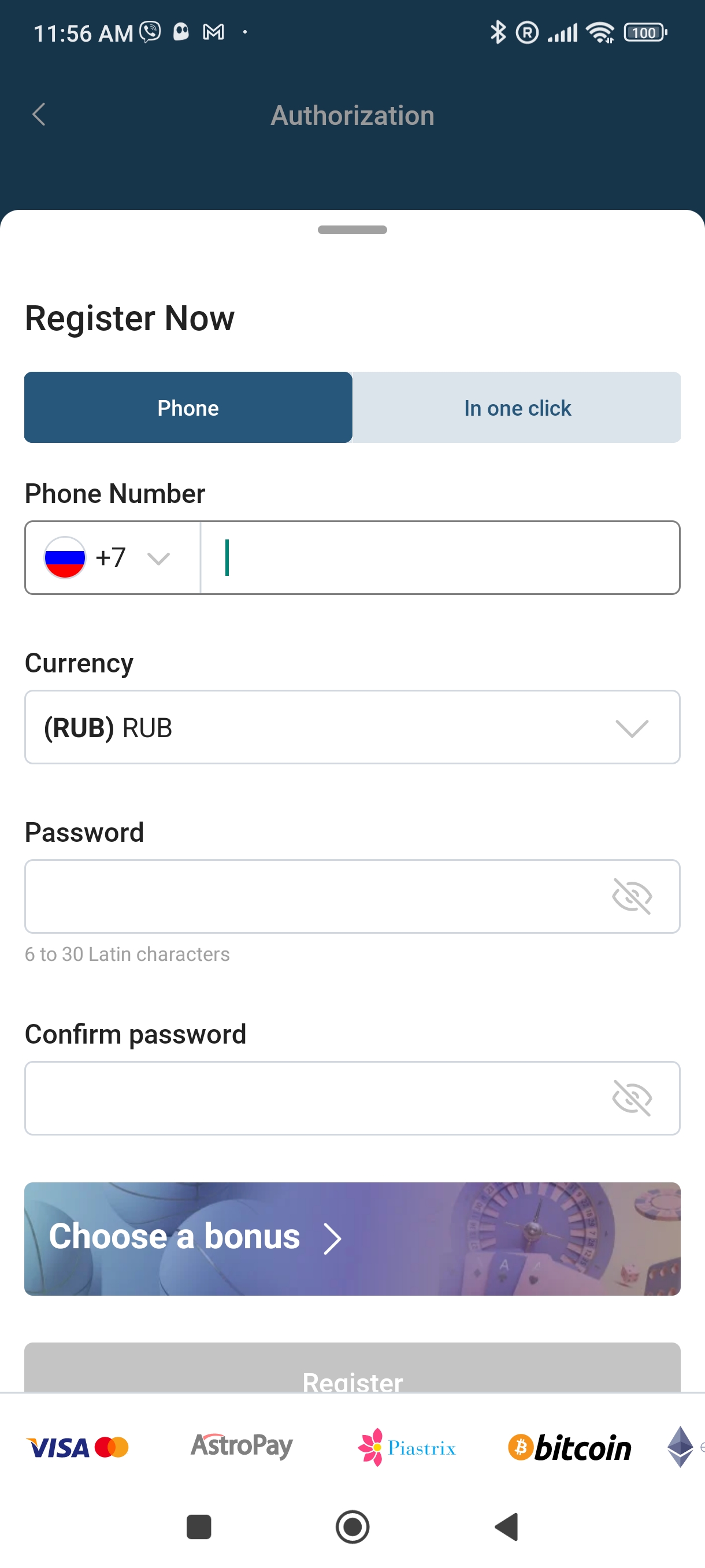 Deposits can be made through the app using Visa, MasterCard, and Mir bank cards, as well as several payment systems and mobile payment options. To fund your account, simply follow these steps: