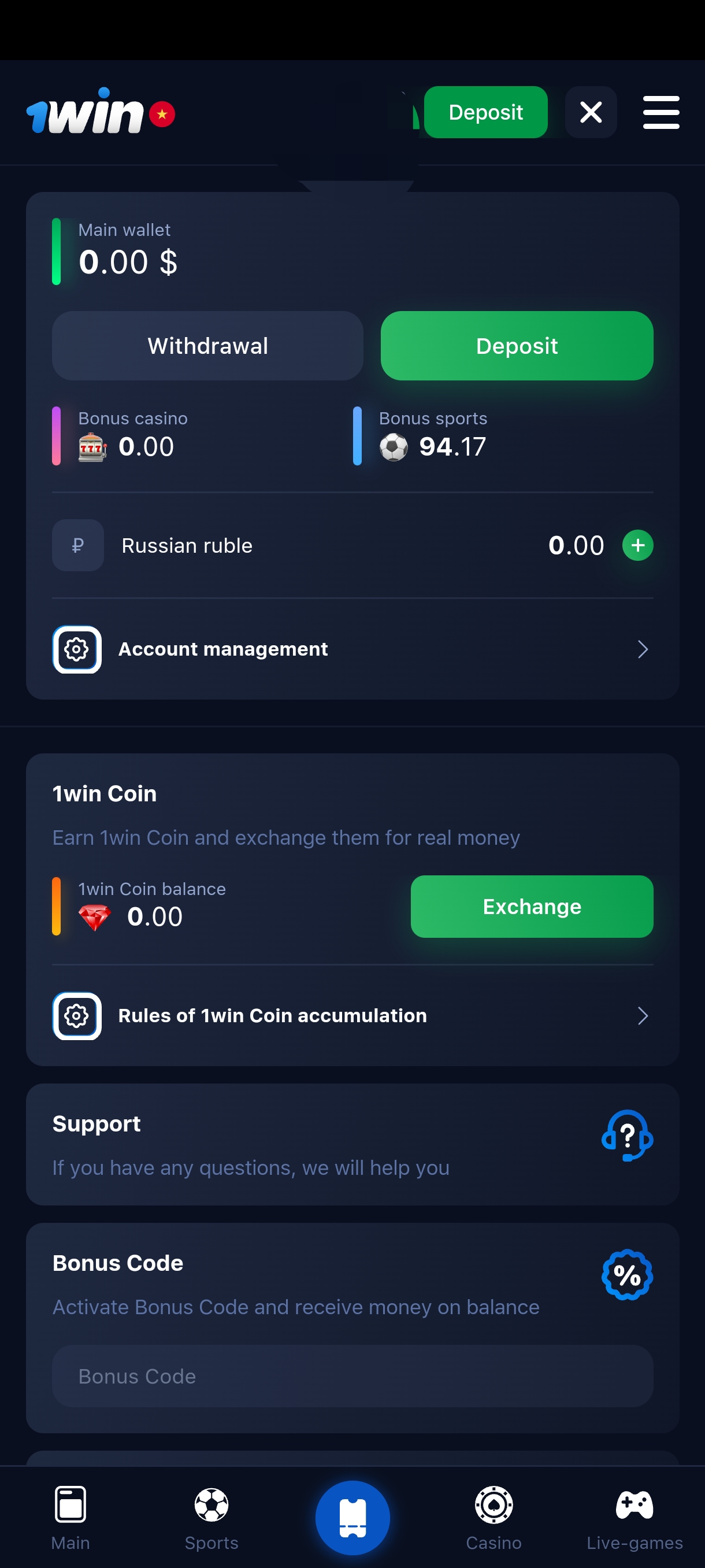 - Variedade de opções de apostas esportivas e cassino ao vivo;