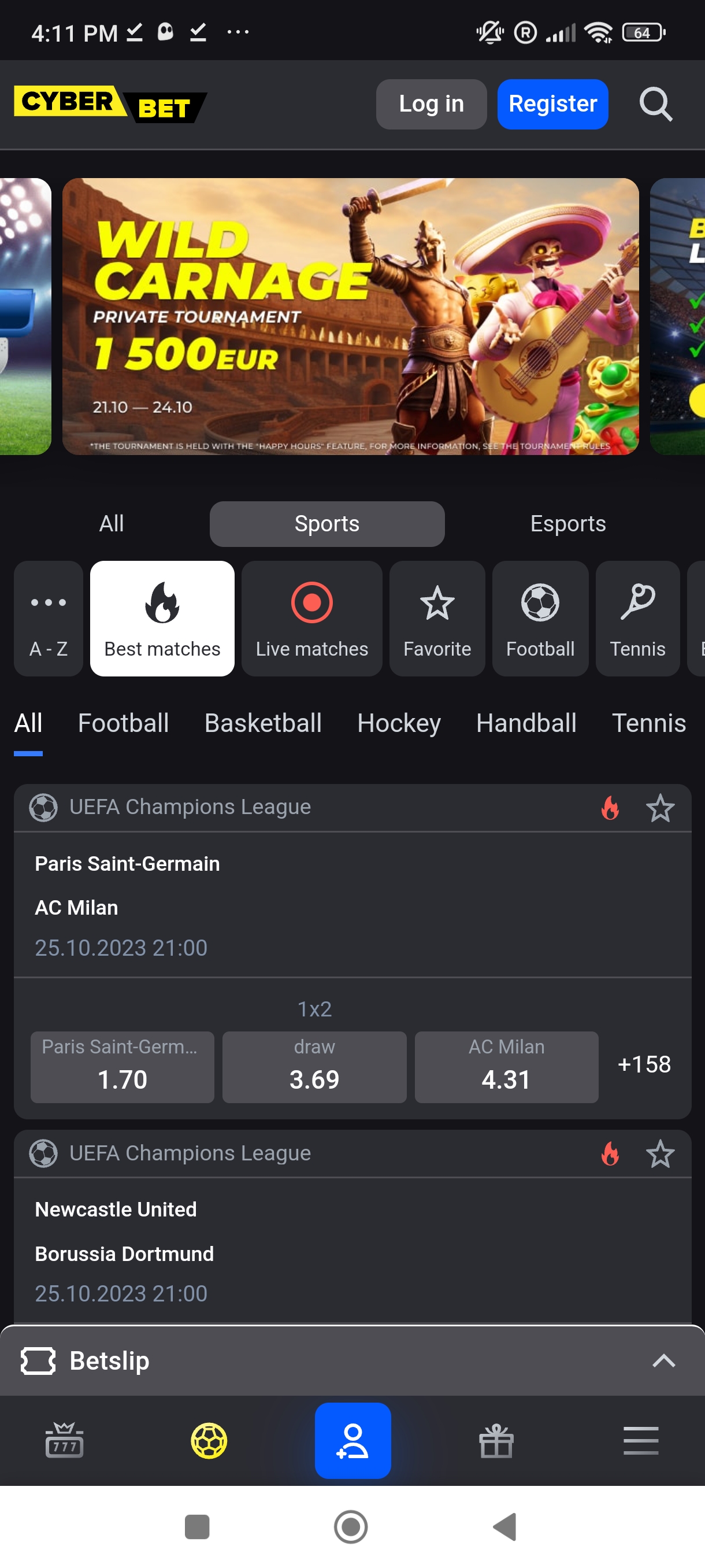 O aplicativo de apostas Cyber Bet para Android permite que você acompanhe todos os jogos significativos em disciplinas como futebol, basquete, MMA, rugby, hóquei, tênis, críquete e outros jogos. Também oferece acesso a jogos de e-sports como StartCraft, LoL, Dota, FIFA, Overwatch, CS: GO, Rainbow Six, Call Of Duty, Hearthstone, Rocket League, NBA 2K, UBG, Apex Legends, Fortnite. Usando este aplicativo de apostas, você sempre terá acesso a uma ampla gama de torneios com as melhores odds. Ao ativar as notificações push sobre partidas futuras e resultados de torneios anteriores, o jogador sempre estará atualizado sobre eventos importantes. O aplicativo para Android e iOS permite que você visite com fluidez o site do seu agente de apostas favorito, contornando bloqueios e problemas técnicos no site principal. Os aplicativos móveis são convenientes de usar e estão sempre à mão, independentemente de onde o apostador esteja.