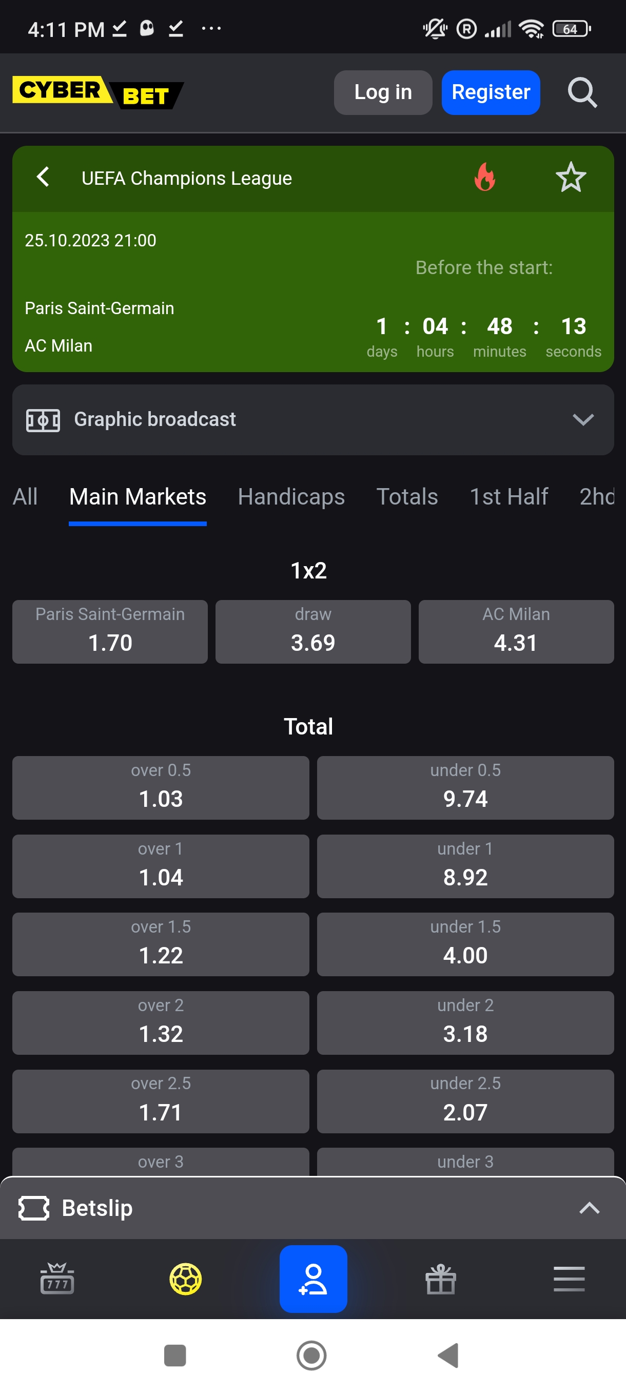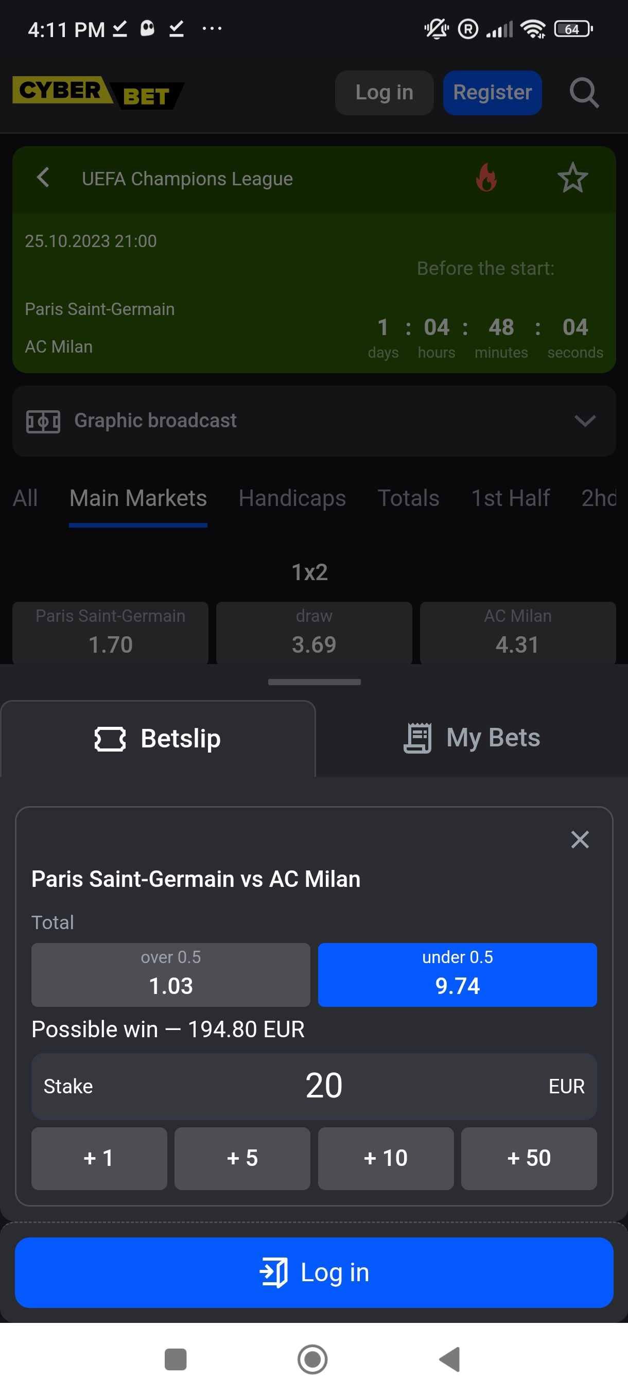 O aplicativo Android e iOS do agente de apostas Cyber Bet já recebeu muitas críticas positivas, graças ao excelente serviço, ampla escolha de torneios, mercados de apostas fantásticos e odds competitivas. O aplicativo é completamente idêntico à versão para desktop, mas permite mais liberdade em termos de tempo e lugar para fazer apostas. É seguro, gratuito, fácil de baixar e permite que você acesse o site do agente de apostas, contornando bloqueios e problemas técnicos.