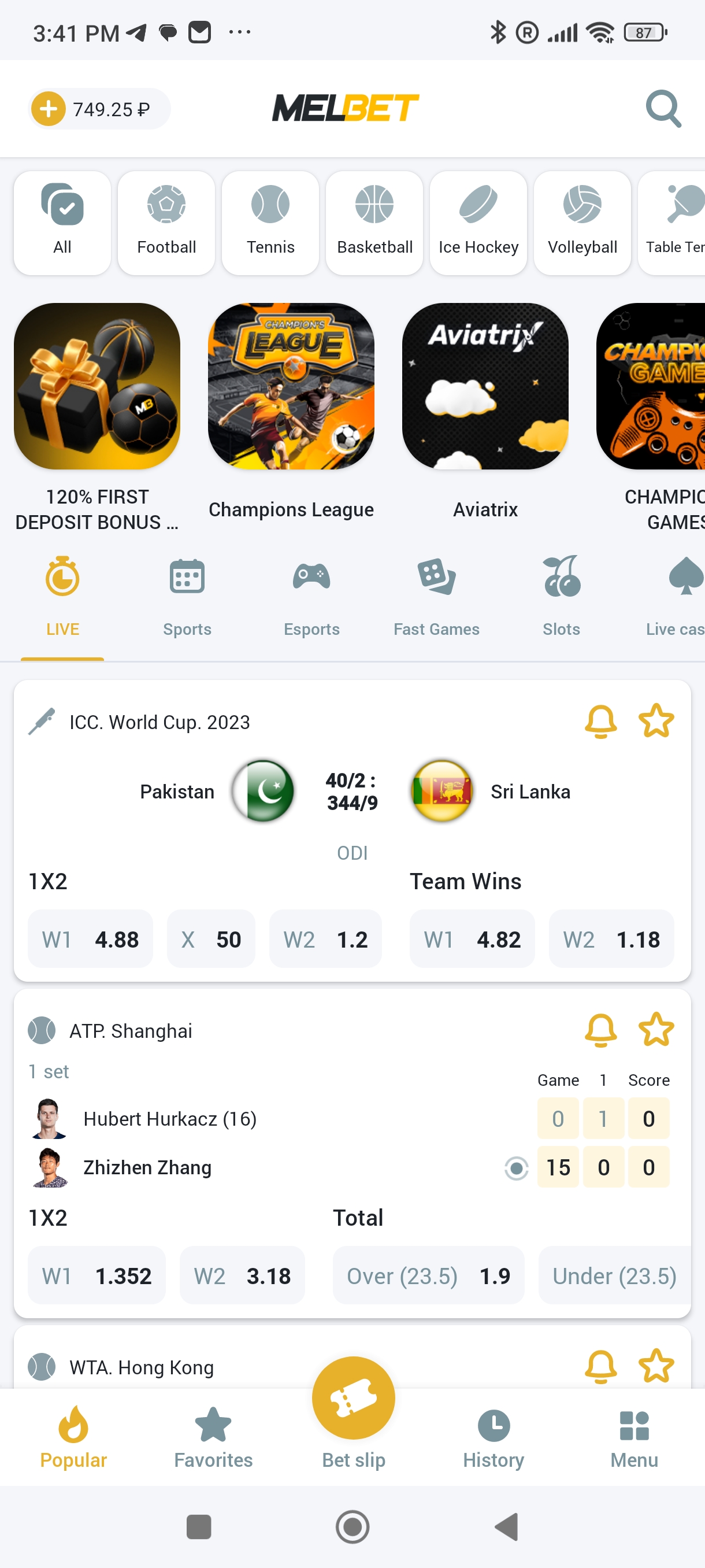 - Une grande variété de jeux de hasard. De la possibilité de parier sur le sport aux jeux de table, Melbet attire un large public grâce à son offre diversifiée. Les jeux de cartes et la roulette sont également disponibles avec des croupiers en direct. Les paris sportifs incluent des disciplines populaires comme le football, le hockey et le tennis, mais aussi des sports moins répandus.