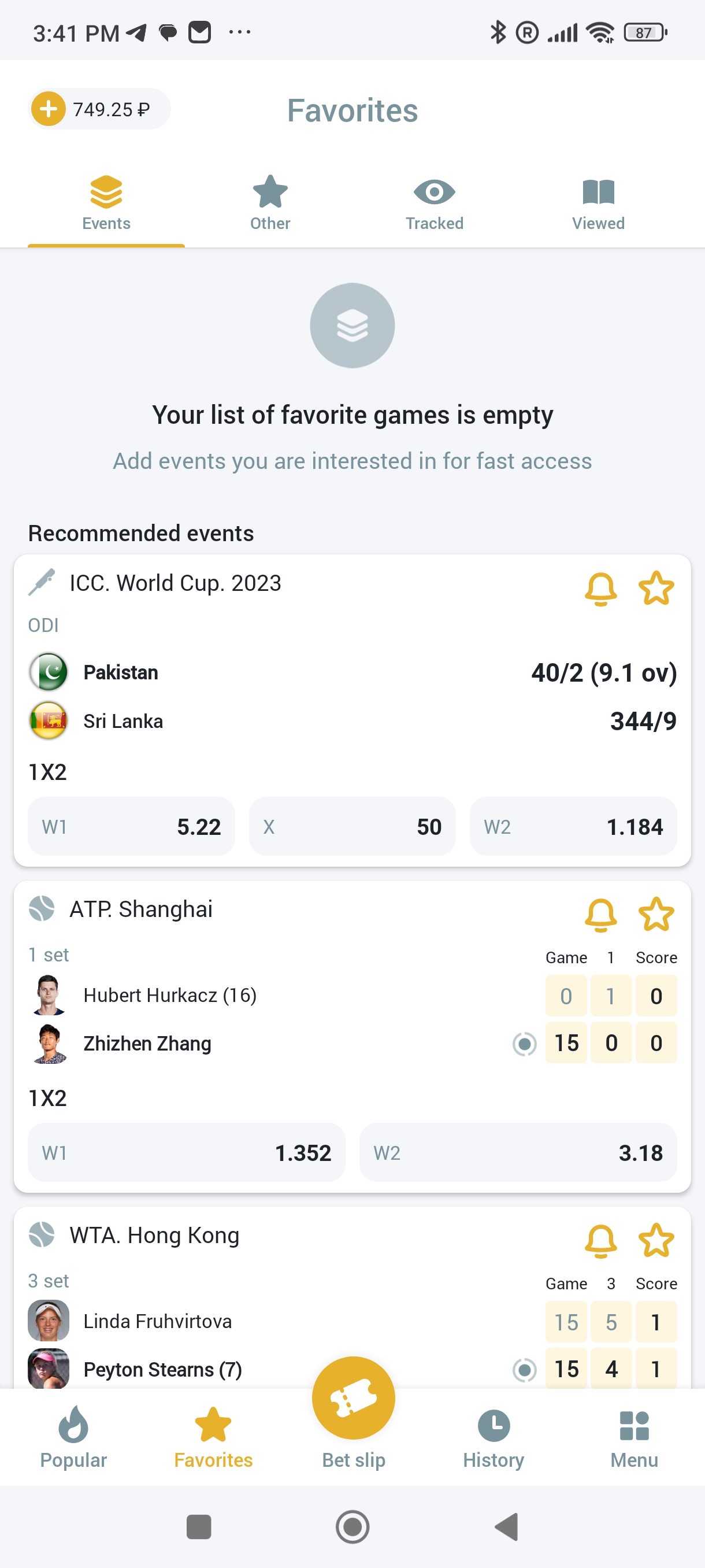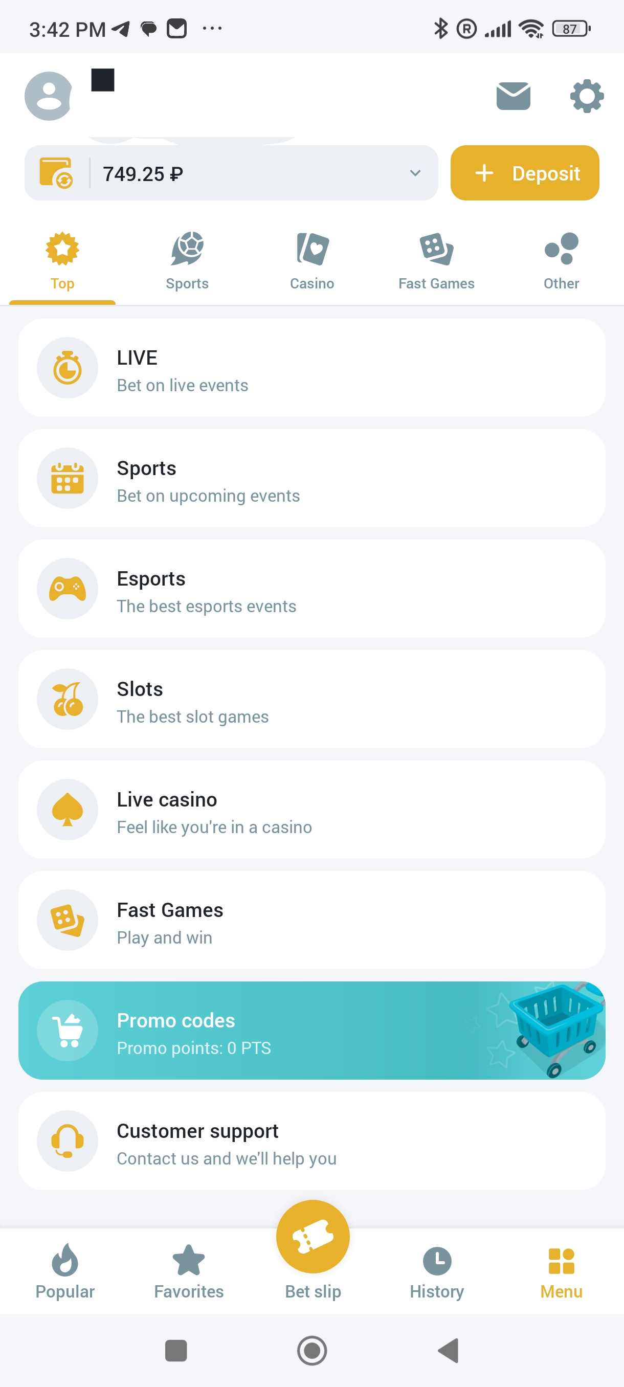 - Gestion du compte. L'application permet un contrôle total du compte. Si vous souhaitez modifier quelque chose, cela peut être fait en quelques clics. Les utilisateurs peuvent facilement recharger leur solde, retirer des fonds, consulter l'historique des paris et activer des bonus. L'interface est intuitive, ce qui facilite la navigation, même pour les débutants.