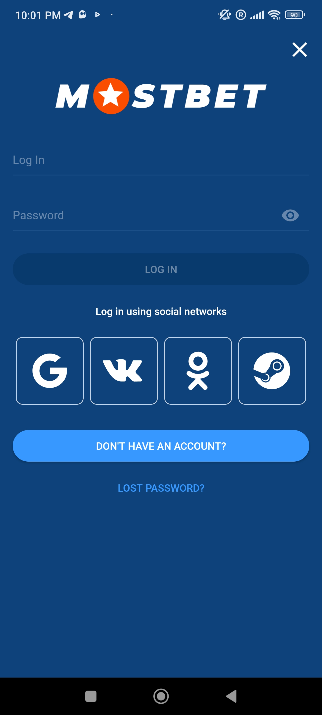 Une fois l'application Mostbet installée, vous devrez soit vous inscrire, soit vous connecter si vous avez déjà un compte.